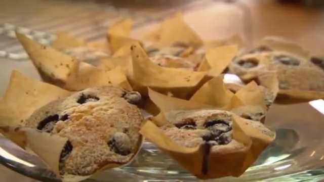 حال می توانید این مخلوط را به قالب تک نفره مناسب انتقال و میوه دلخواه (بلوبری) را روی آن قرار دهید.