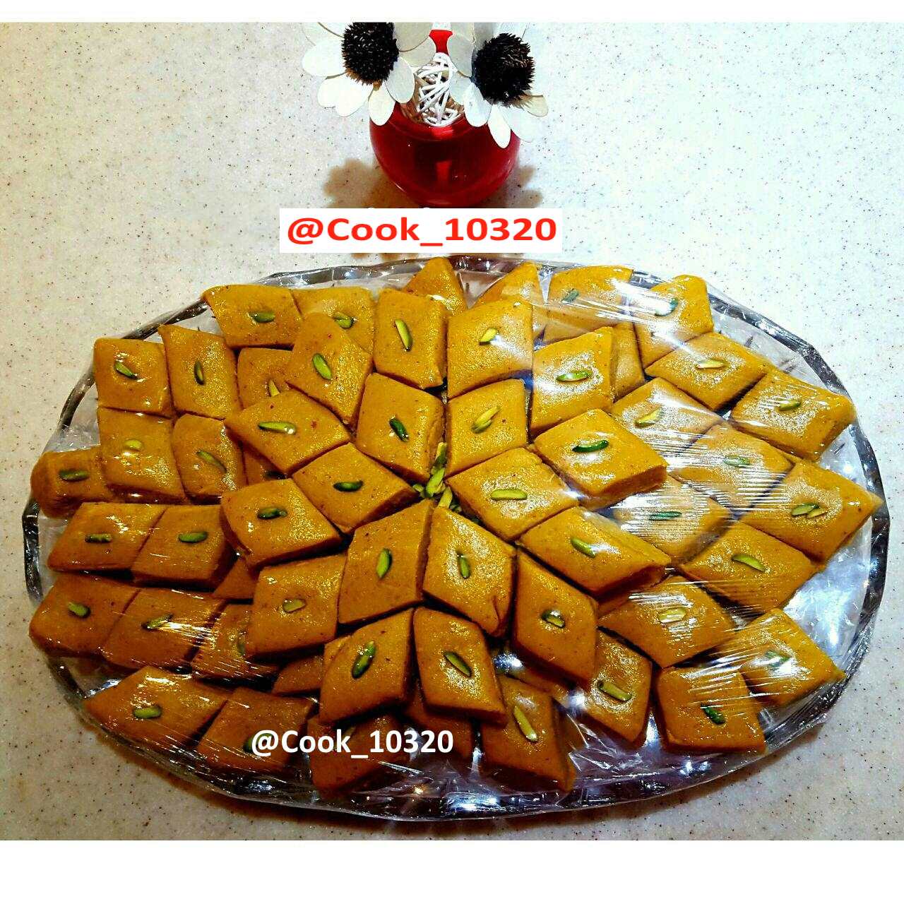 وقتی ضخامتشو تنظیم کردید با چاقو بشکل لوزی برش میدیم،در این مرحله کنار دستتون دستمال نمناک تمیز بذارید تا اکر مواد به چاقو چسبید با دستمال نمناک تمیزش کنید و راحت برش بدین،در انتهای کار هم لوزها رو در ظرف مناسب سرو کنید و با خلال پسته یا خلال بادام تزیین کنید
