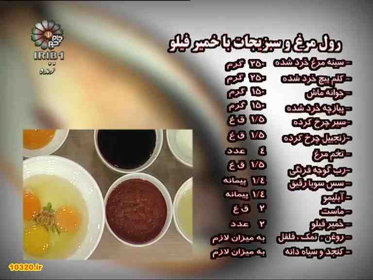 رول مرغ با سیزیجات با خمیر فیلو---Cook 287