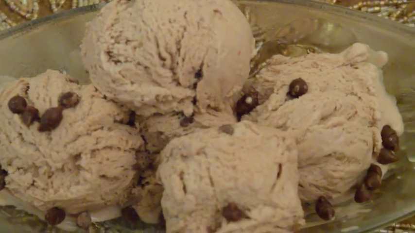 حال مخلوط قبل را از فریزر خارج و با هم زن کاملا مخلوط کرده تا نرم و یکنواخت شود. سپس خامه و اسانس شکلات را اضافه کنید. هم زدن را انقدر ادامه دهید تا نرم و یکنواخت شود. سپس در ظرف دلخواه ریخته و به آن شکلات چیپسی را اضافه کنید و در ظرف را محکم بسته و دوباره در فریزر قرار داده به مدت حدود 14 ساعت و بستنی آماده است.
