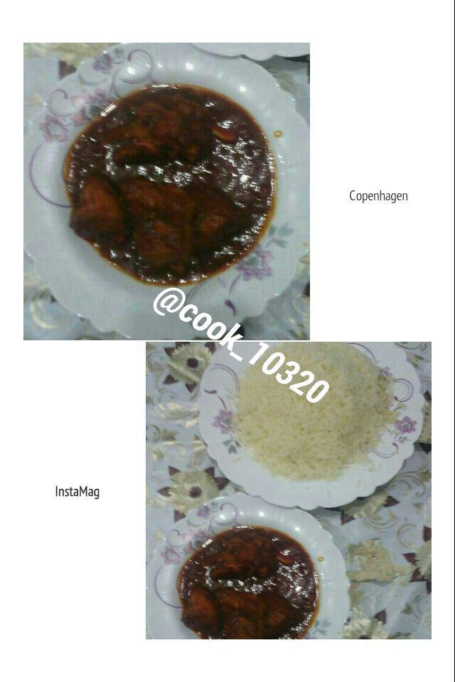 قبل از شروع یک ظرف مناسب انتخاب کنید و 2 قاشق غذاخوری رب گوجه فرنگی در آن بریزید، همچنین 1 یا 1.5 قاشق غذاخوری رب انار بهش اضافه کنید، از رب گوجه فرنگی برای رنگ دادن به غذا و از رب انار برای مزه دادن به غذا استفاده میکنیم، پس میتونید خودتون این نسبت رو کمی دست کاری کنید، چون در رنگ غذا تاثیر خواهد داشت، این ربی که من استفاده کردم از شمال خریدیم و کیفیت خیلی عالی داشت.